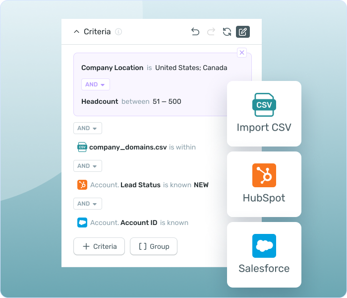 - Import account lists + champion personas with deep filtering (size, tech, persona).