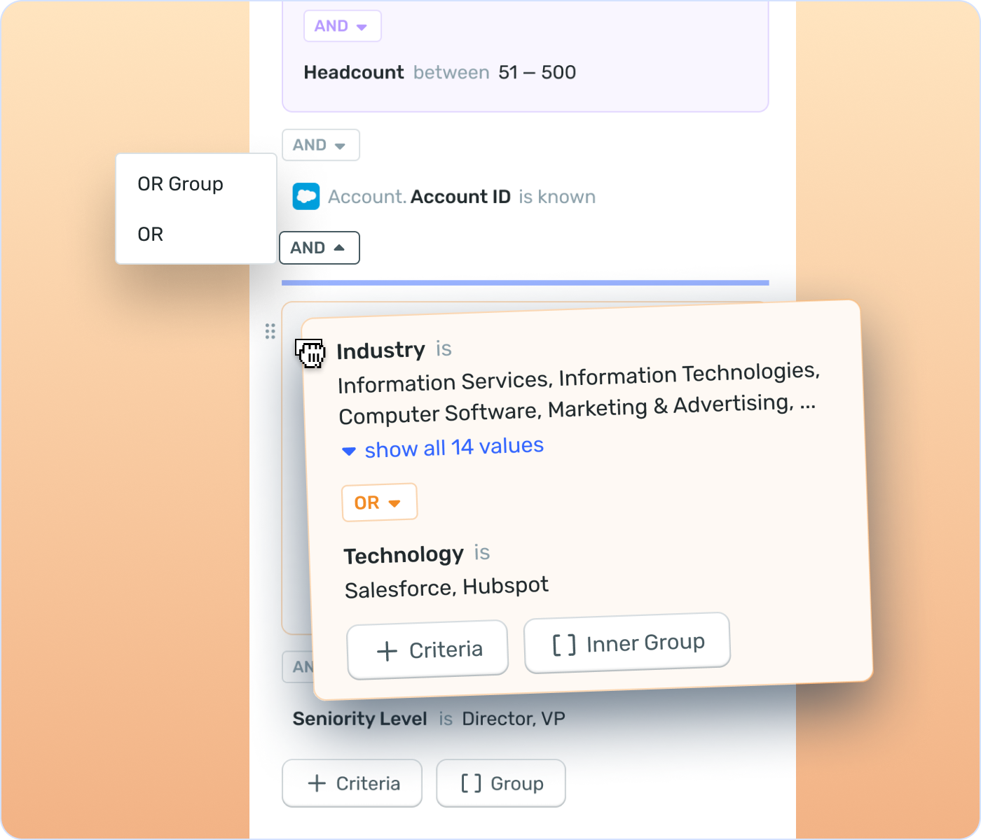 - Build audiences by filtering Primer’s database by company size, industry, department, seniority, tech stack and more.